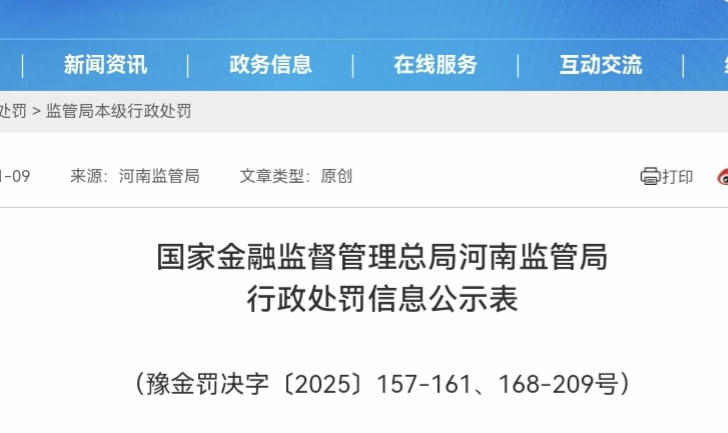 国家金融监督管理总局河南监管局行政处罚信息公...