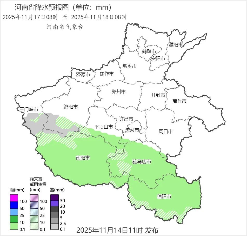 此次过程由于水汽配合“不足”,因此我省雨雪总体不多,主要时段是在16日傍晚到17日 ,中西部、南部有小雨或雨夹雪,重点关注西部和南部 。
