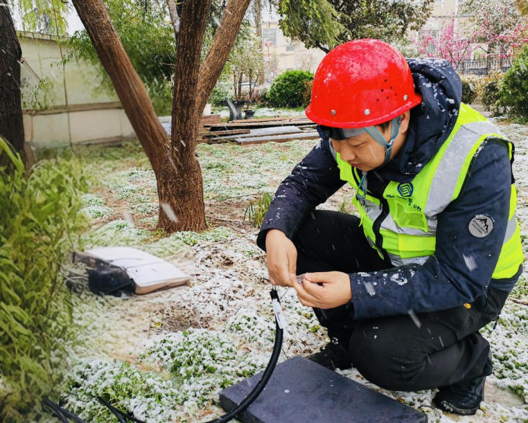 基站建设要争先,网络抢修更是冲锋在前。2024年冬天,一场罕见暴雪突袭新郑。凌晨,郭店基站突发故障,告警声骤然响起。赵金岭二话没说,抓起设备就冲进了风雪。积雪没过脚踝,冷风刮在脸上像刀割,通往基站的小路早已白茫茫一片。他凭借记忆,深一脚浅一脚地向前挪,手冻僵了,就搓一搓再接着干。故障排除、信号恢复时,他整个人已成了雪人。