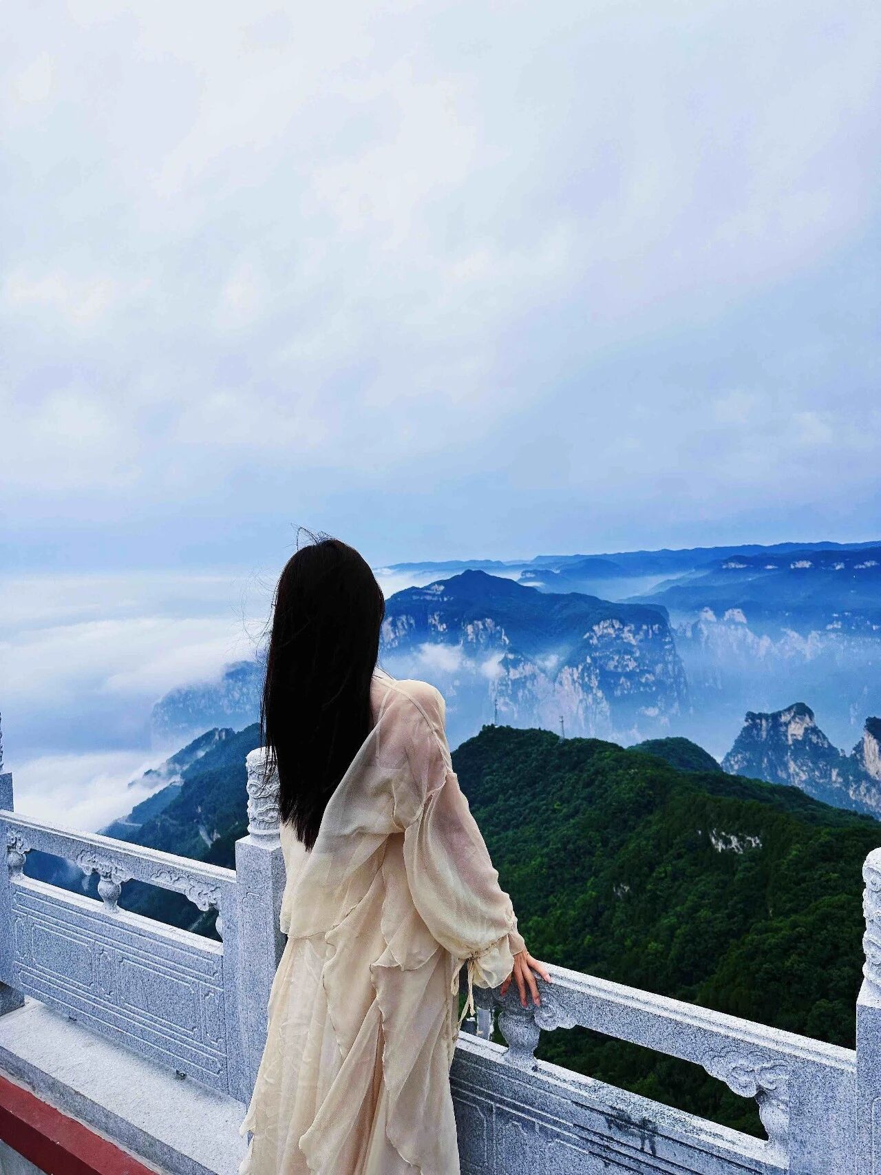 机位:索道靠窗位拍穿云动态感,茱萸峰观景台拍全景,玻璃栈道拍悬空云海视角