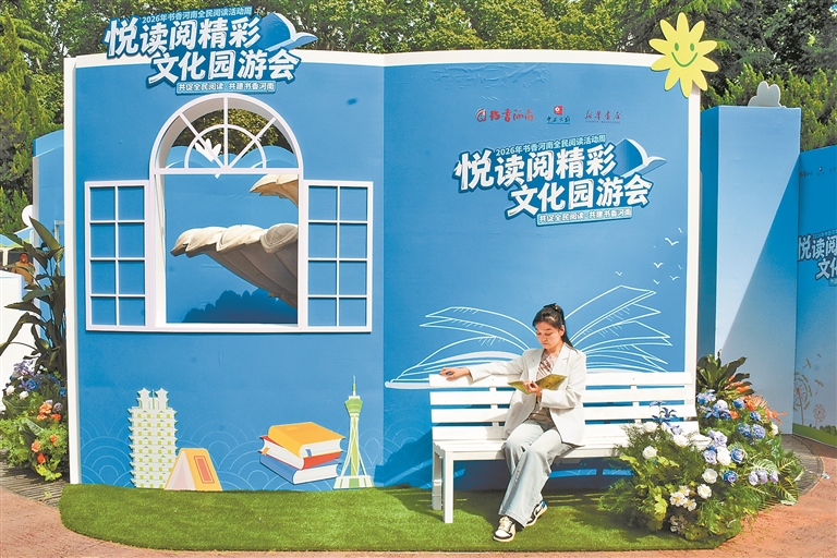 4月20日,读者在2026年书香河南“全民阅读活动周”暨“悦读阅精彩”文化园游会现场阅读。 赵墨波 摄