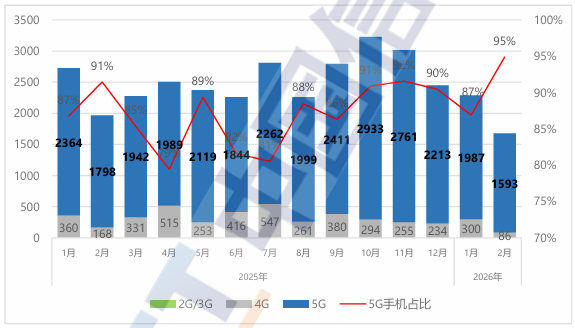 中国信通院:2月国内市场手机出货量下降14.6%...
