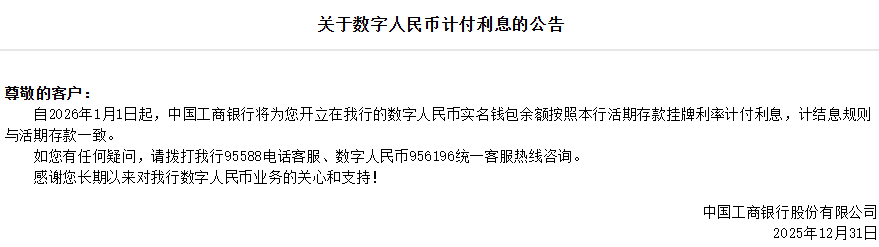 多家银行宣布:2026年起数字人民币钱包余额可计付...