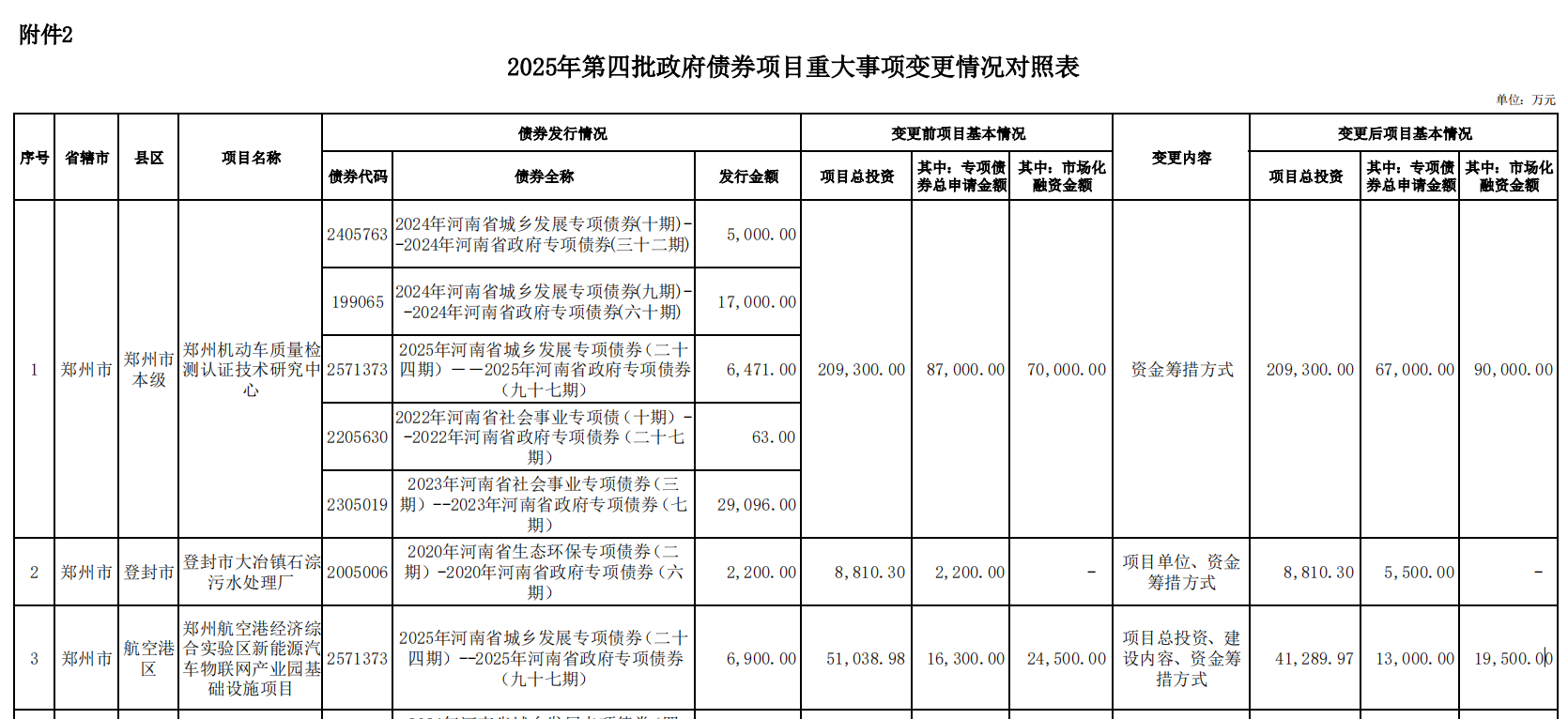 河南省23个专项债项目变更,市场化融资总额29.93...