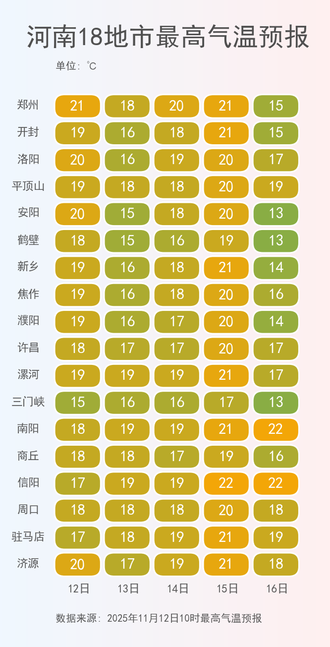 此轮冷空气对气温影响不大,预计今天起到15日,多地最高气温在16-20度波动,午后暖意仍在,但最低气温仍只有个位数,早晚温差依然较大,普遍在10度以上,早出晚归还需棉衣护体!
