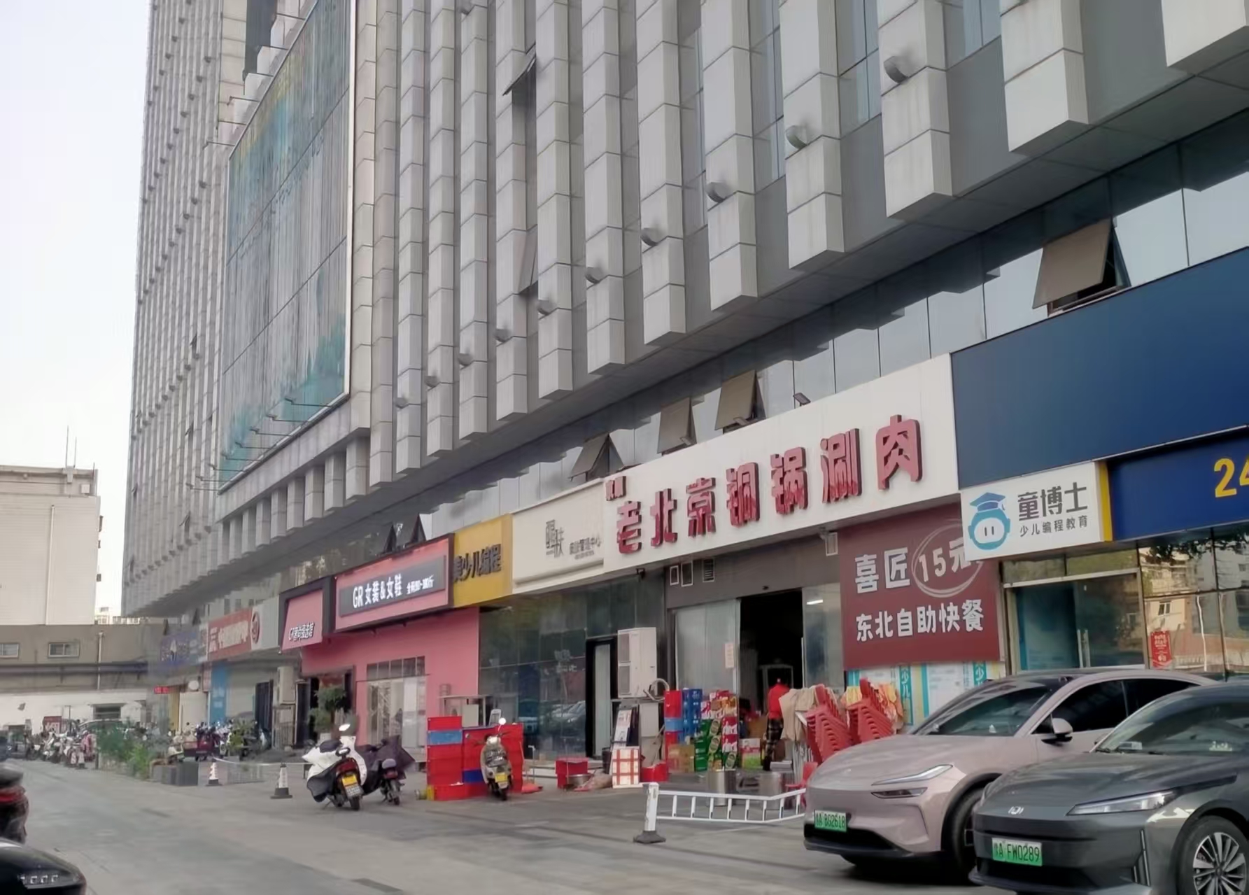 该中心由两栋高楼组成,分属两家物业公司管理,涉事火锅店位于A座底商,其南侧是银行、北侧为普通商铺,是该区域唯一的餐饮商户。