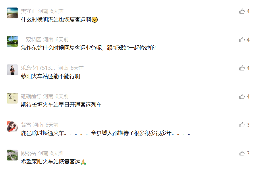 新郑站恢复客运的消息,就像按动了一枚记忆按钮。评论区里,不少人提起自己家门口的火车站: