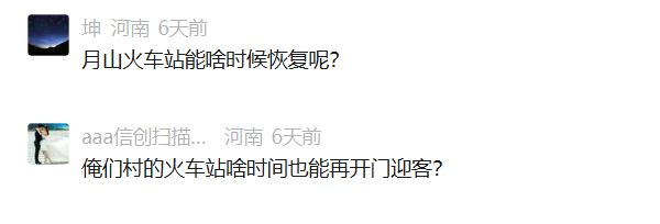 “中原,铁炉,封丘,长垣这几个车站啥时候能恢复客运业务?”