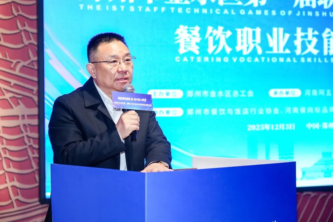 金水区总工会党组书记、常务副主席李东在致辞时表示:“餐饮行业是服务民生的重要领域,是展示城市形象与生活品质的窗口。此次大赛不仅是对我区餐饮行业职工技能水平的一次集中检阅,更是贯彻落实人才强国战略、大力弘扬劳模精神、劳动精神、工匠精神的具体实践。”