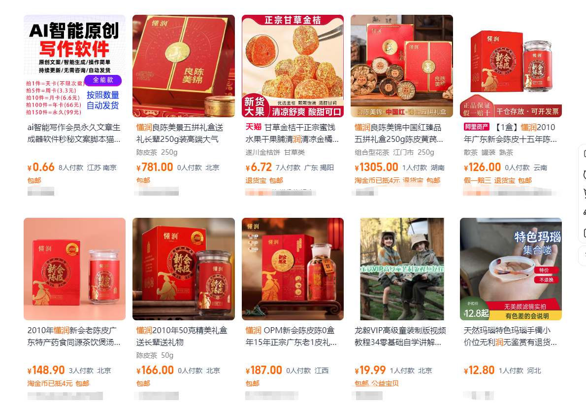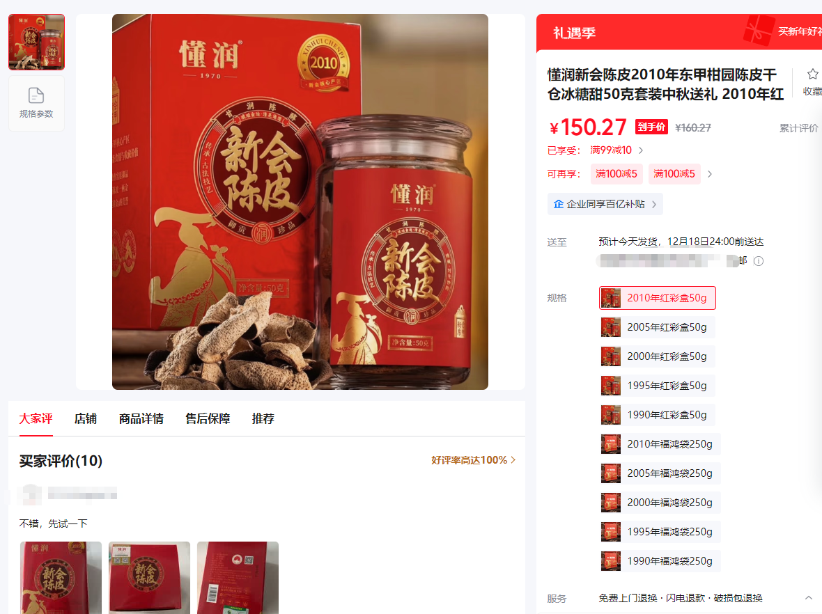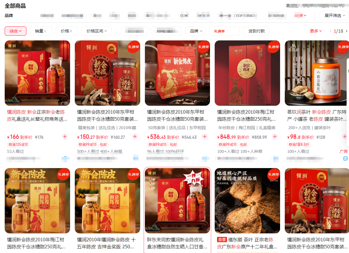 12月15日下午,大河报《看见》记者搜索发现,上述江门市新会懂润农业有限公司生产的多款“年份”陈皮产品在多个电商平台上仍有销售。