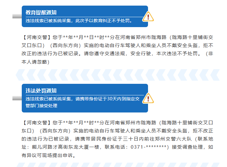 其中,电动自行车违法治理系统是基于部署在非机动车道的技术监控设备,构建了“发现-识别-通知-处理”的智能化治理体系闭环。该系统能够自动识别违法行为,固定违法证据、关联违法行为人,并通过“河南交警”官方平台自动向当事人推送违法行为告知及处理指引短信。