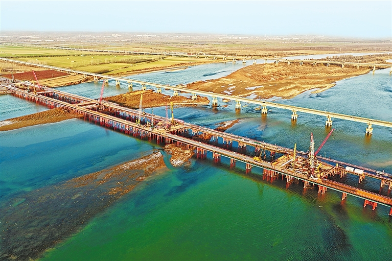 焦洛平高铁洛阳黄河公铁大桥。 陈永创 摄