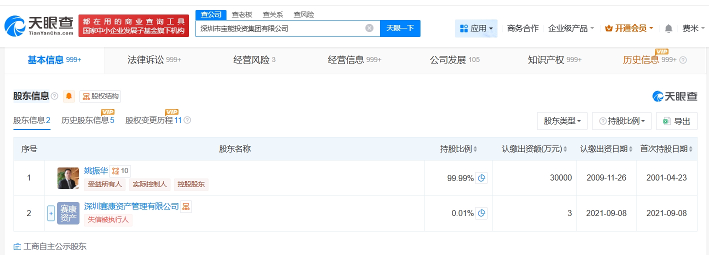 深圳市宝能投资集团有限公司成立于2000年3月,注册资本约3亿元,该公司由姚振华、深圳赛康资产管理有限公司共同持股。