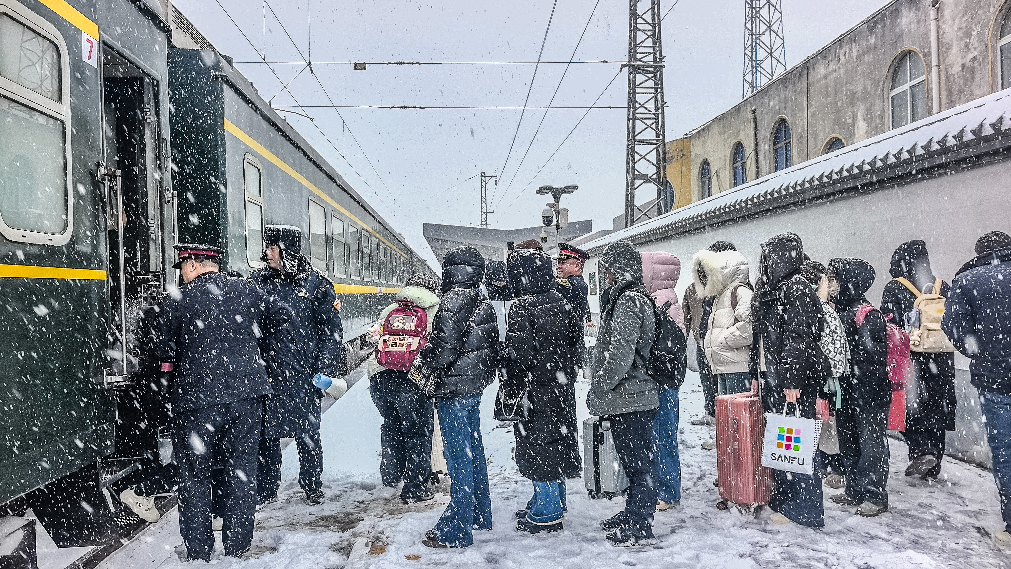 铁路部门温馨提示,雨雪天气路面湿滑,车站周边道路车辆较多,易产生拥堵,请广大旅客朋友密切关注列车开行时间,合理安排出行,预留充足进站时间,确保安全有序出行。