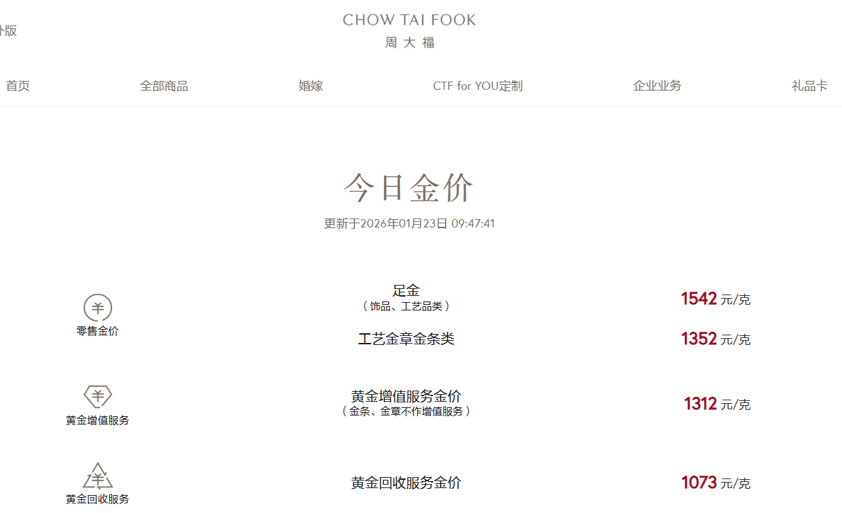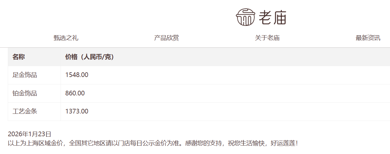 国内多数知名金饰品牌报价刷新1500元/克。其中,老庙黄金报1548元/克,较昨日上涨52元/克;周生生报1545元/克,较昨日上涨53元/克;周大福报1542元/克,较昨日上涨44元/克;老凤祥为1538元/克,单日上涨43元/克。