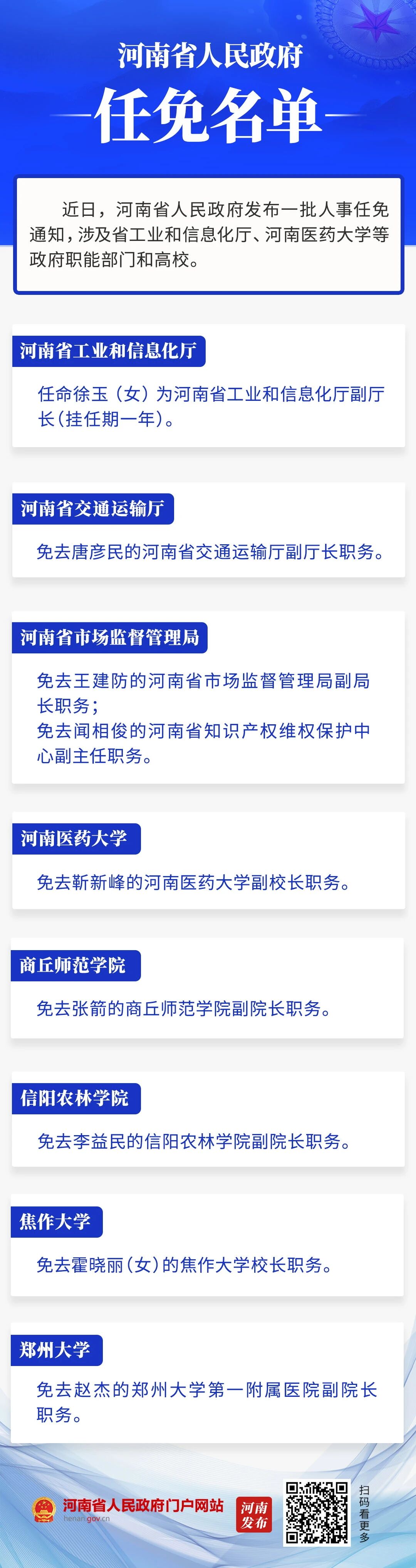 河南省政府新任免一批干部