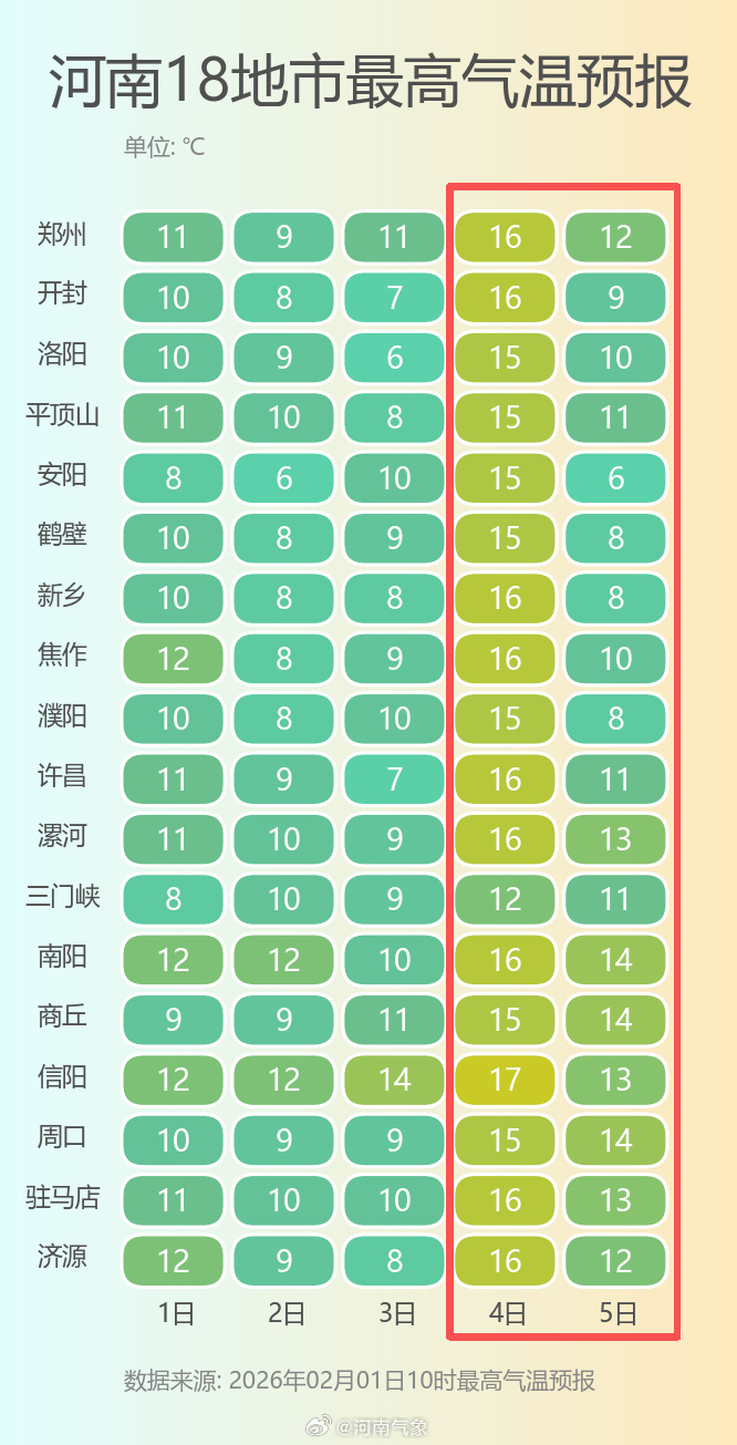 具体的升温节奏是:2日多地最高气温突破10℃,到4日立春当天,全省最高温将迎来“滑跃式”起飞,普遍达到15℃以上,郑州甚至可能冲向16℃。