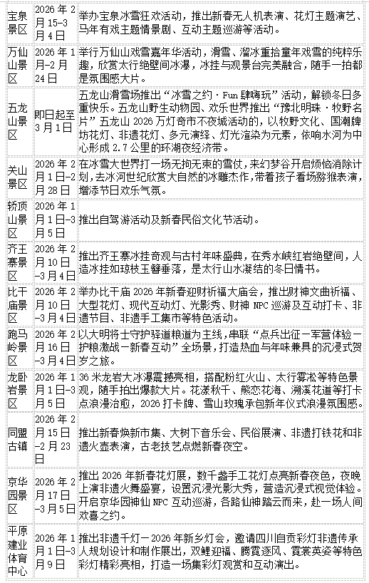 【大河财立方消息】 2月8日,河南省文化和旅游厅整合发布2026河南新春游玩指南出炉,涉及郑州、洛阳、开封、南阳等18地。 【责任编辑:牛尚 】 【内容审核:靳静波 】 【总编辑:黄念念 】 关注河南一百度了解更多本地资讯