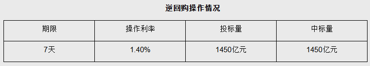 【大河财立方消息】 2月13日,中国央行公开市场开展1450亿元7天期逆回购操作,操作利率1.40%。今日有315亿元7天期逆回购到期,实现净投放1135亿元。