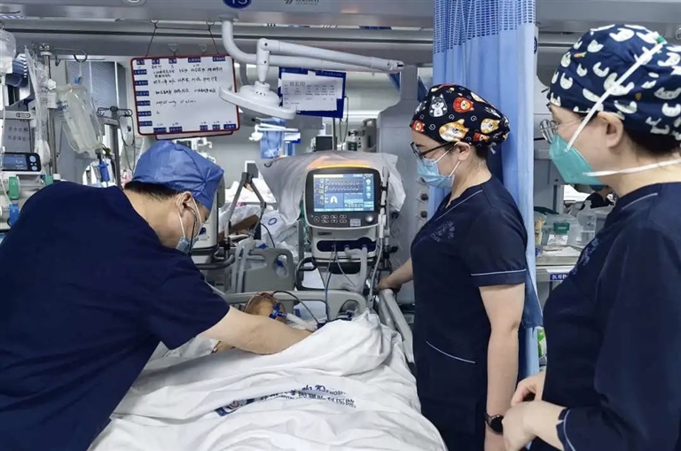 急危重症医学部副主任、重症医学科主任邵换璋迅速协调,重症医学科副主任陈超带队出发。刚下夜班还在查房的朱宁医生、ECMO轮值护士刘世杰,接到电话后二话不说,主动放弃休假,以最快速度集结出发。
