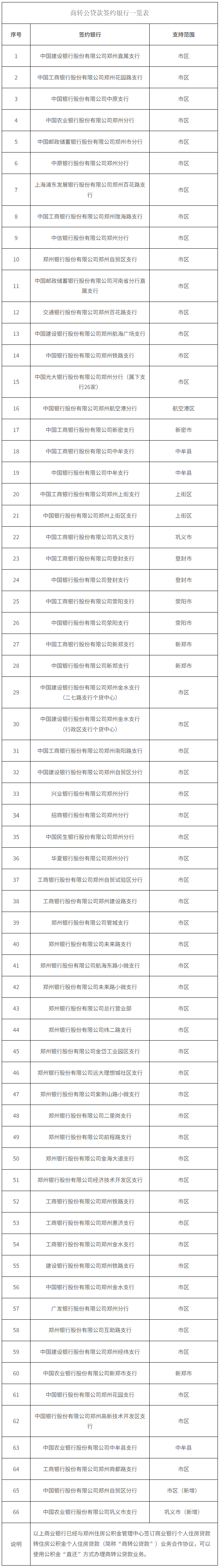 此前,郑州已有64家银行签约商转公贷款协议,加上此次公布的银行,目前一共有66家银行可办理商转公贷款业务。