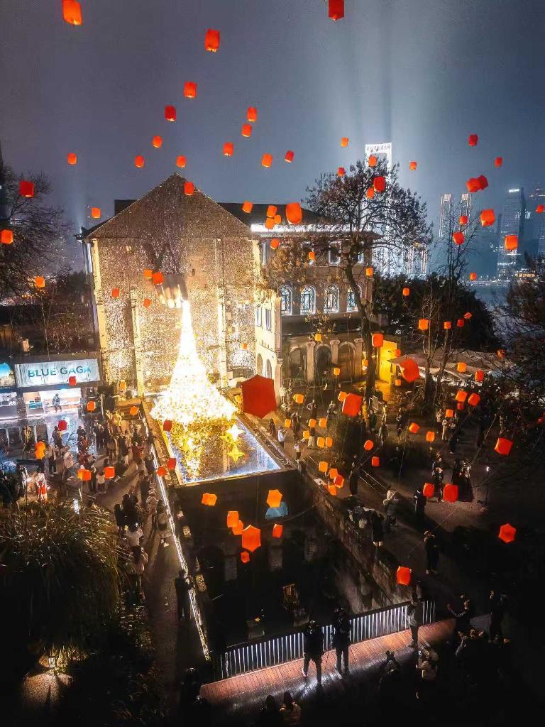 夜幕降临,重庆渝中区山城巷第五届天灯节元宵特别场如约而至。暖黄的灯光顺着阶梯蜿蜒铺展,千盏孔明灯将“平安喜乐”的愿望升入夜空。