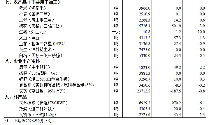 【大河财立方消息】3月4日,国家统计局发布2026年2月下旬流通领域重要生产资料市场价格变动情况。
