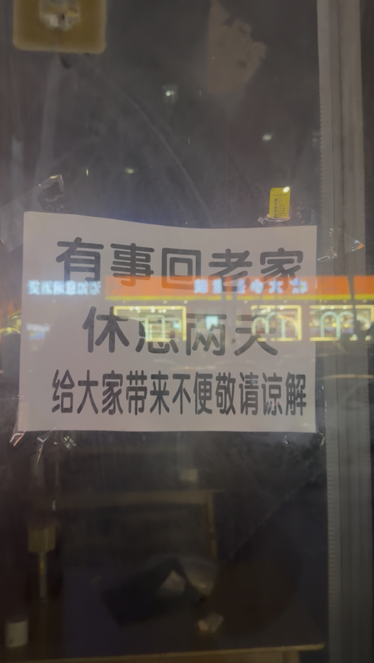 记者随即前往其中3家门店实地探访,发现确实没有营业,其中一店玻璃上贴着一张纸条,上面写着“有事回老家休息两天”,另外两家店门也都落锁。