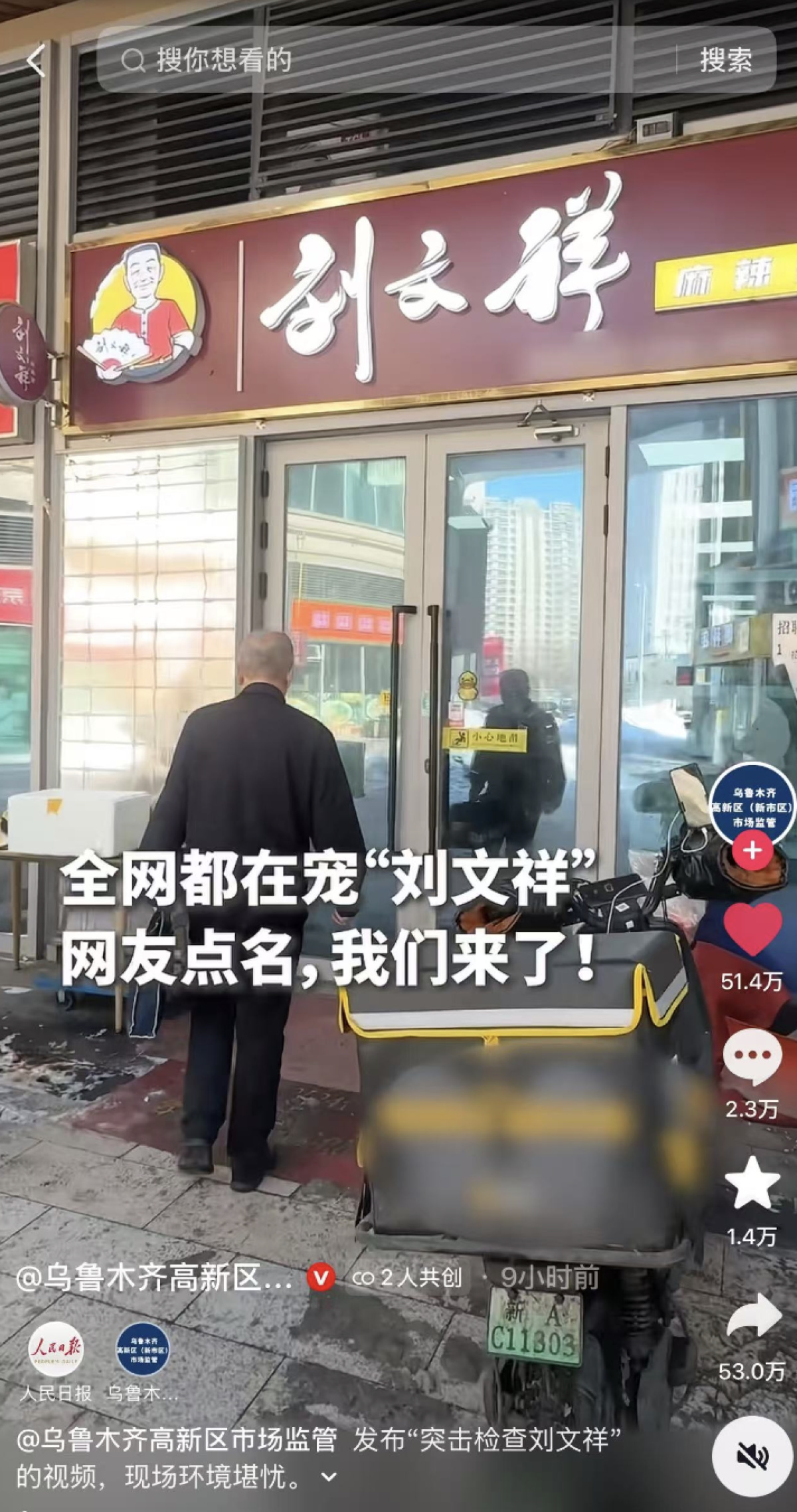 此前,因一句“如果全世界都指责你,我带你去吃刘文祥”的网红台词走红,刘文祥麻辣烫在社交平台上受到不少网友打卡关注。曾有郑州媒体报道“刘文祥麻辣烫爆火!门店挤满外卖员机器不停地出单!老板一天卖1000份”。