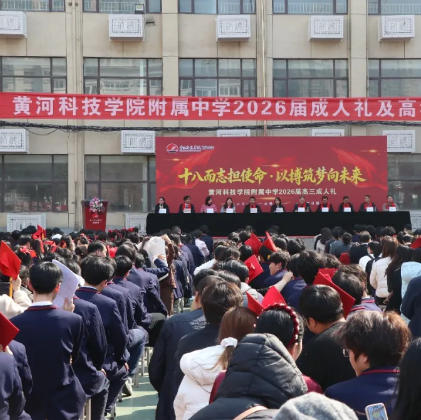 春分到,龙抬头,万物生,少年志。2026年3月20日,恰逢春分与农历二月初二“龙抬头”双节同庆,黄河科技学院附属中学在东操场隆重举行2026届高三成人礼暨高考80天冲刺誓师大会。千余名高三学子在父母与师长的见证下,以青春之名赴成年之约,立冲刺高考之誓。附中党支部书记、校长程晓林、常务副校长田清雅、党支部副书记贵鑫以及附中领导班子全体成员出席活动。