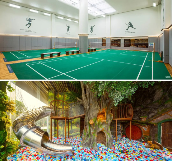 星级运动会所、全龄赋能泛会所,室内国标级双羽球馆、健身房,让社区成为健康生活的滋养场;悦宾厅、红酒雪茄吧是业主的第二会客厅;四季书吧、精灵树屋、绿茵会馆等多功能空间赋能全龄成长。