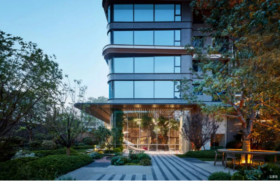 豪宅曲线立面,以弧线赋予建筑柔和韵律,勾勒有温度的居所,南向超80%玻璃幕墙、铝板结构,立序金水高颜值美学地标。
