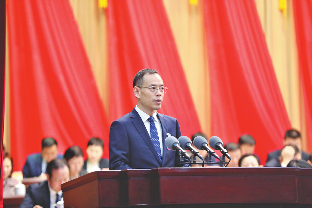2月26日,市长秦保建在济源市第十五届人民代表大会第六次会议上作政府工作报告。本报记者 李楠 程子明 摄