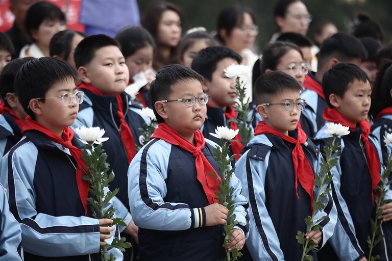 清明节前夕,郑州市郑东新区康平小学组织师生代表到郑州烈士陵园缅怀先烈。 河南日报全媒体记者 聂冬晗 摄