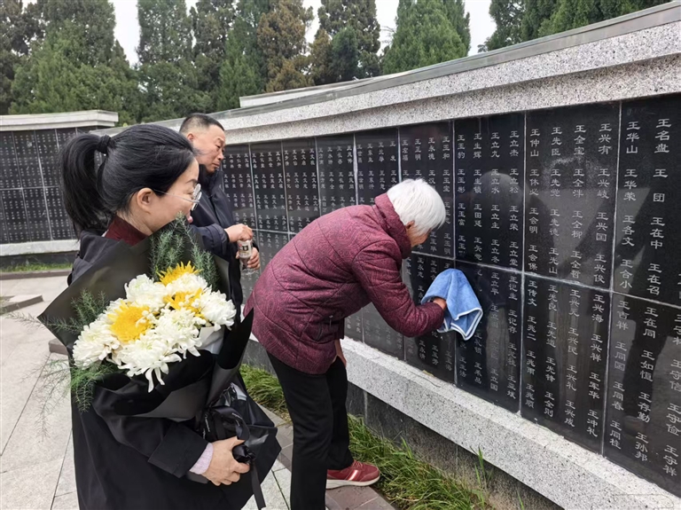 清明节前夕,各界群众来到郑州烈士陵园,敬献鲜花、擦拭墓碑,传承红色精神,表达对英烈的崇高敬意。 河南日报全媒体记者 聂冬晗 摄