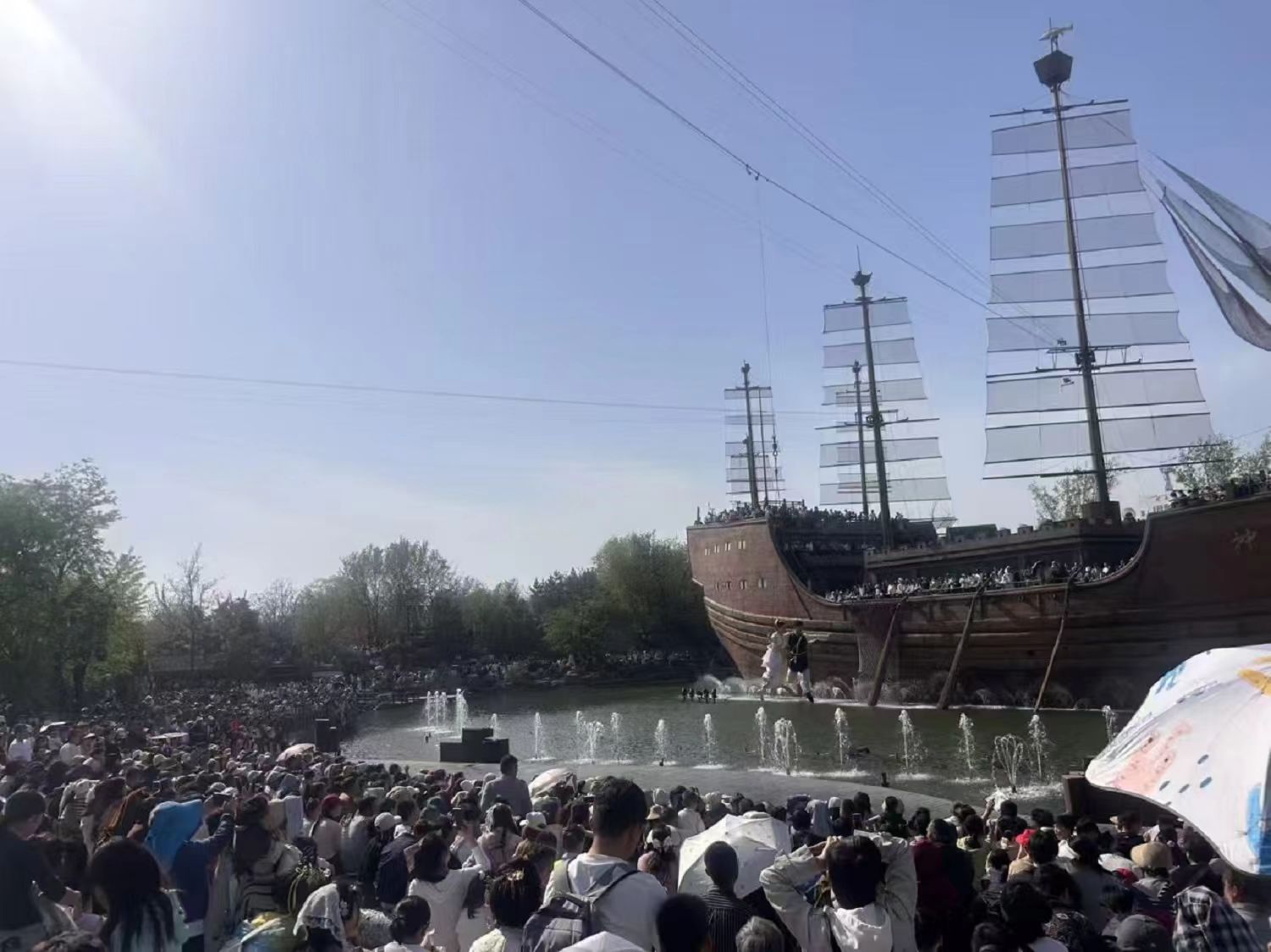 受持续火爆客流影响,4月4日、5日,万岁山武侠城连续启动限流措施。
