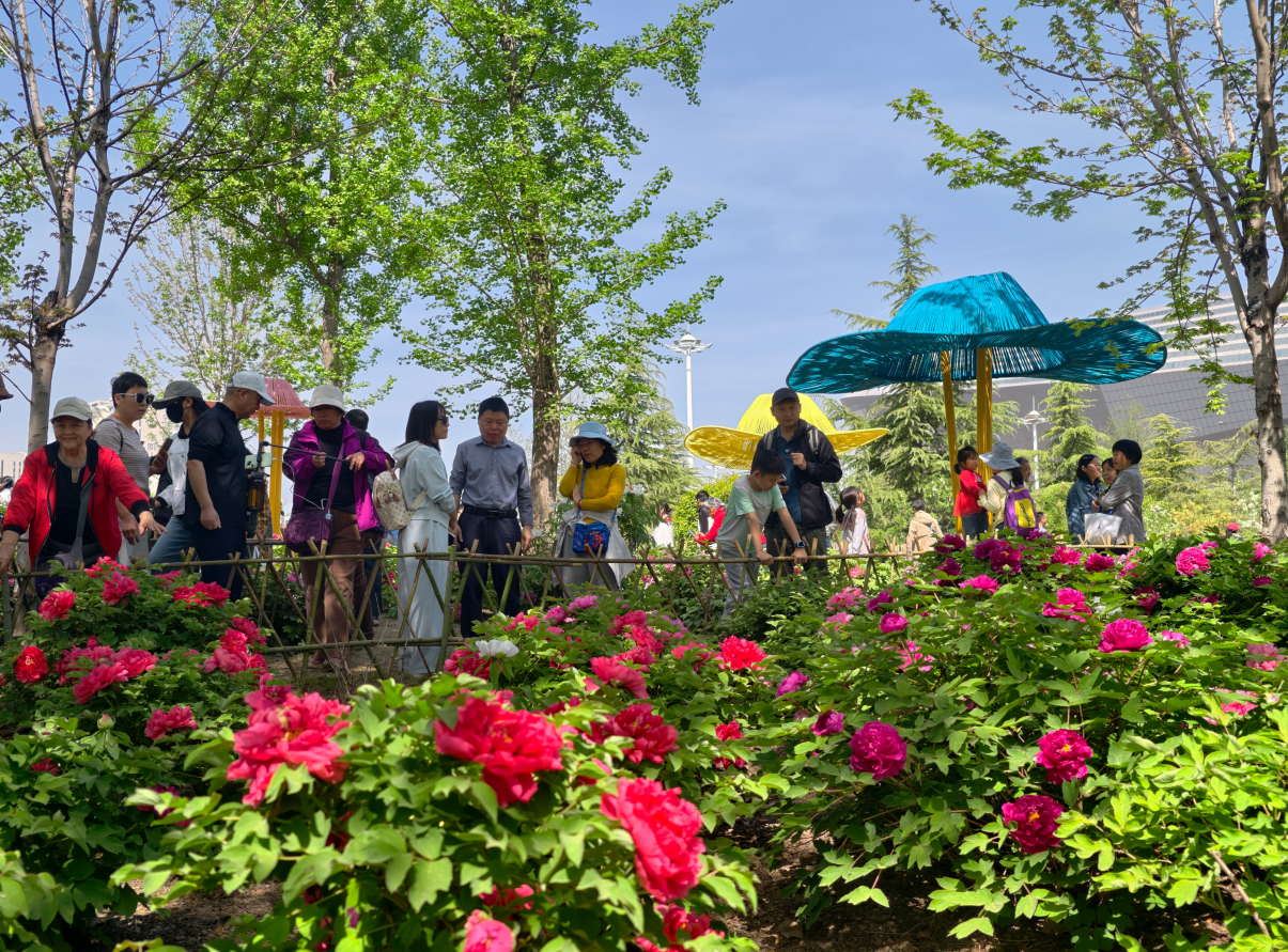 在牡丹芍药园附近,园区精心布置“花间奇遇·童梦自然”“点赞中原”“帽美如花·春日绮梦”“花环锦簇·春之盛景”等众多艺术造景,为市民游客打造一场沉浸式花展。