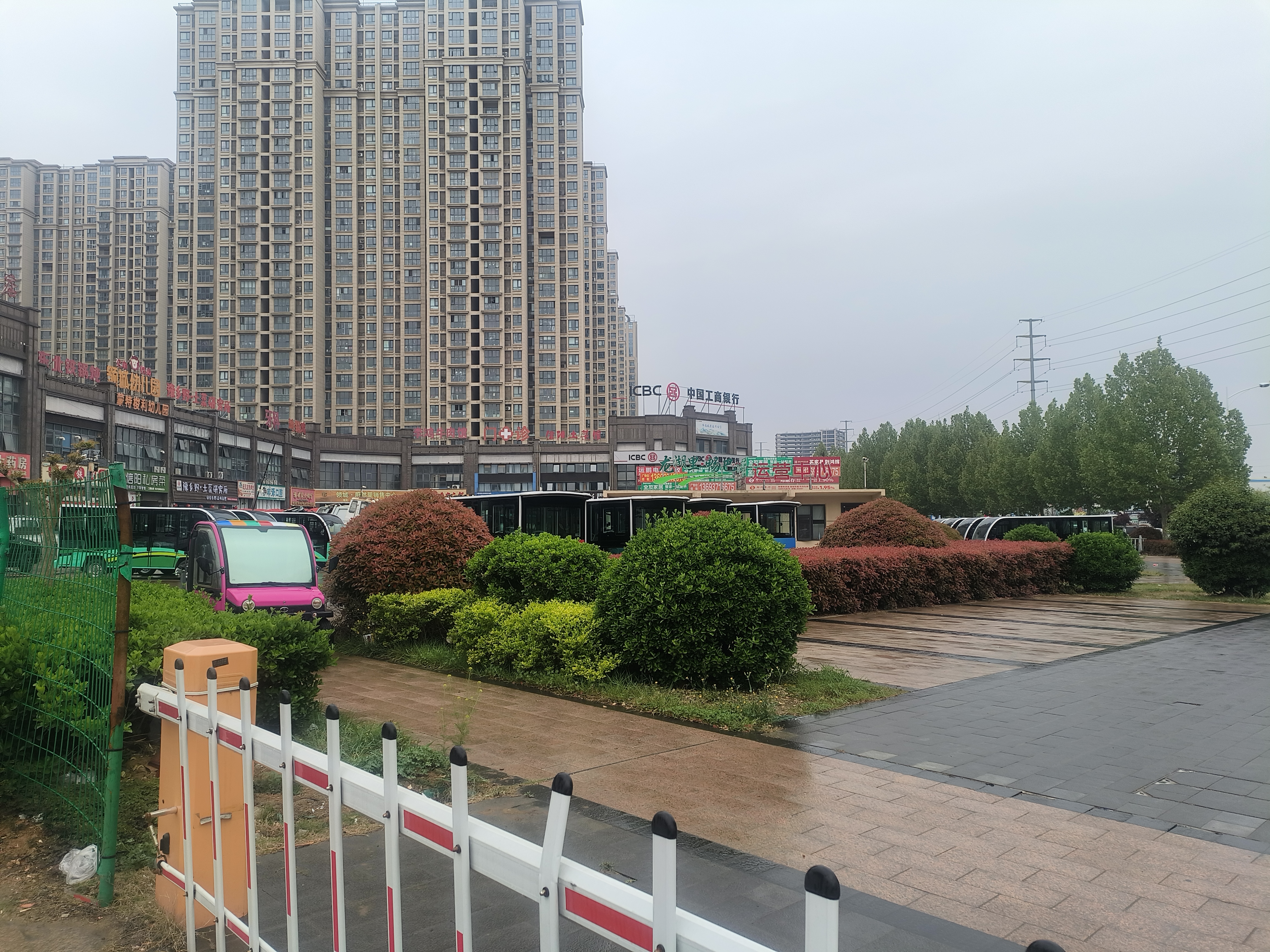 4月7日,邻妹妹乘坐地铁2号线来到新郑市龙湖街道(原龙湖镇)双湖大道地铁站。刚出站口,就看到一排摆着小马扎的队伍,每当有乘客从电梯下来,队伍最前面的人便立即上前揽客——这些都是排队候客的三轮摩的。站外的路边和旁边的停车场,停着多辆三轮摩的。不少出站市民选择乘坐三轮摩的,但更多单人出行的市民,则选择到地铁站南边的龙湖大道与双湖大道交叉口东南角附近,乘坐绿色的电动公交车。邻妹妹也跟随几人一同来此等候。