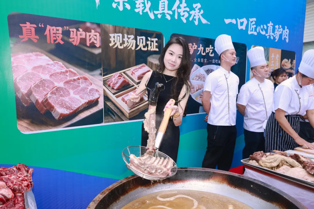 本次活动以透明化、体验化为核心亮点,让嘉宾直观感受品牌坚守。真假驴肉对比展区,专业人员现场展示优质驴肉与劣质肉在纹理、色泽、弹性、气味等方面的差异,普及辨别知识,公开食材甄选标准与品控流程,以公开透明彰显品牌底气。