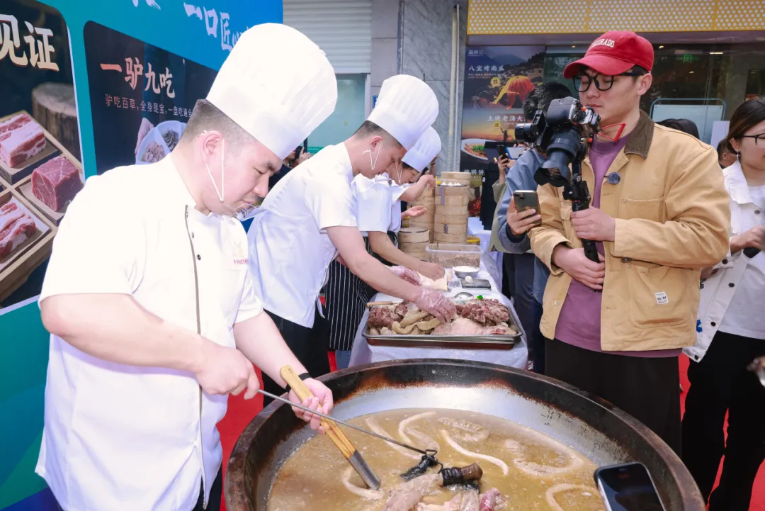 开放式现制现尝区,大厨现场操作、透明制作:老汤现卤驴肉沿用四十余年传承老汤,文火慢卤数小时,肉质酥烂、脂香浓郁;手工现包现蒸驴肉包子皮薄馅足、汤汁饱满,热气腾腾还原儿时味道。嘉宾可零距离观看制作过程,现场品鉴鲜香味美。