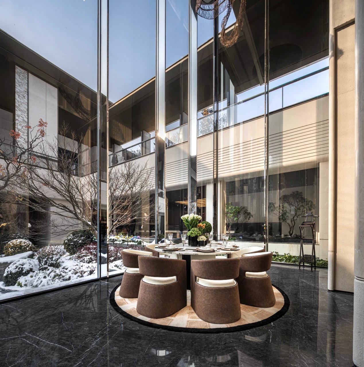 项目特邀建筑设计大师薄光剑操刀,打造郑州首座360°光影雕塑建筑,立面实景已呈,成为中原路封面地标,超百米城市界面搭配高10米、宽50米的华盖式恢弘门庭,镶嵌梵高棕天然奢石,归家仪式感与尊贵感扑面而来;园区首创区域南法美学园林,构筑隐奢禅境,三大下沉庭院为业主提供沉浸式社交与休憩空间。