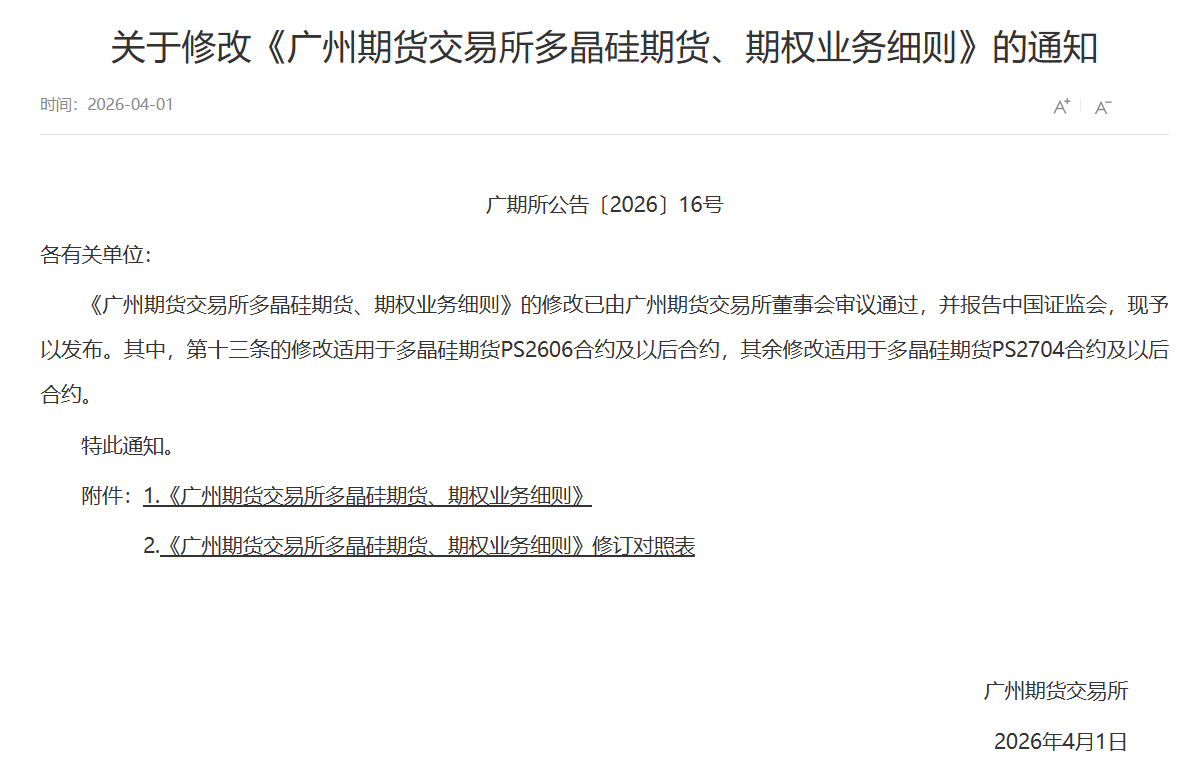 可交割品范围扩大、持仓限额分阶段调整,广期所修