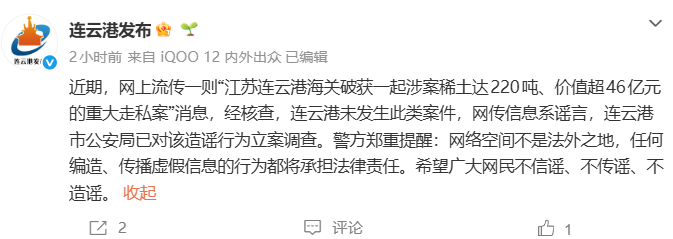 破获涉案稀土220吨、价值超46亿重大走私案?连云