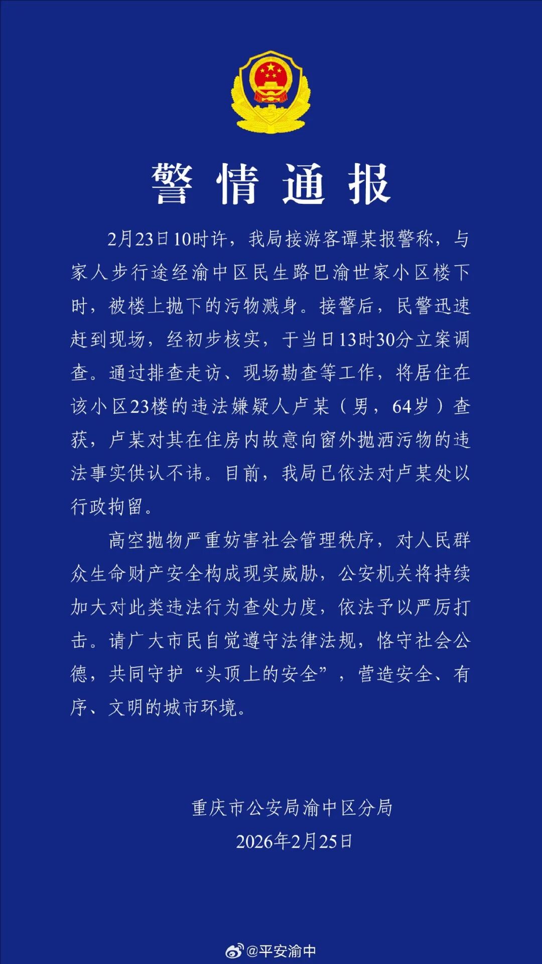 重庆警方发布警情通报